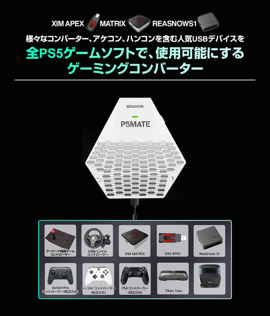 Besavior P5 Mate PS5用 ゲーミングコンバーター アダプター PS5本体直挿し可能 有線接続 【国内正規品/日本語パッケージ/安心の日本語マニュアル付】